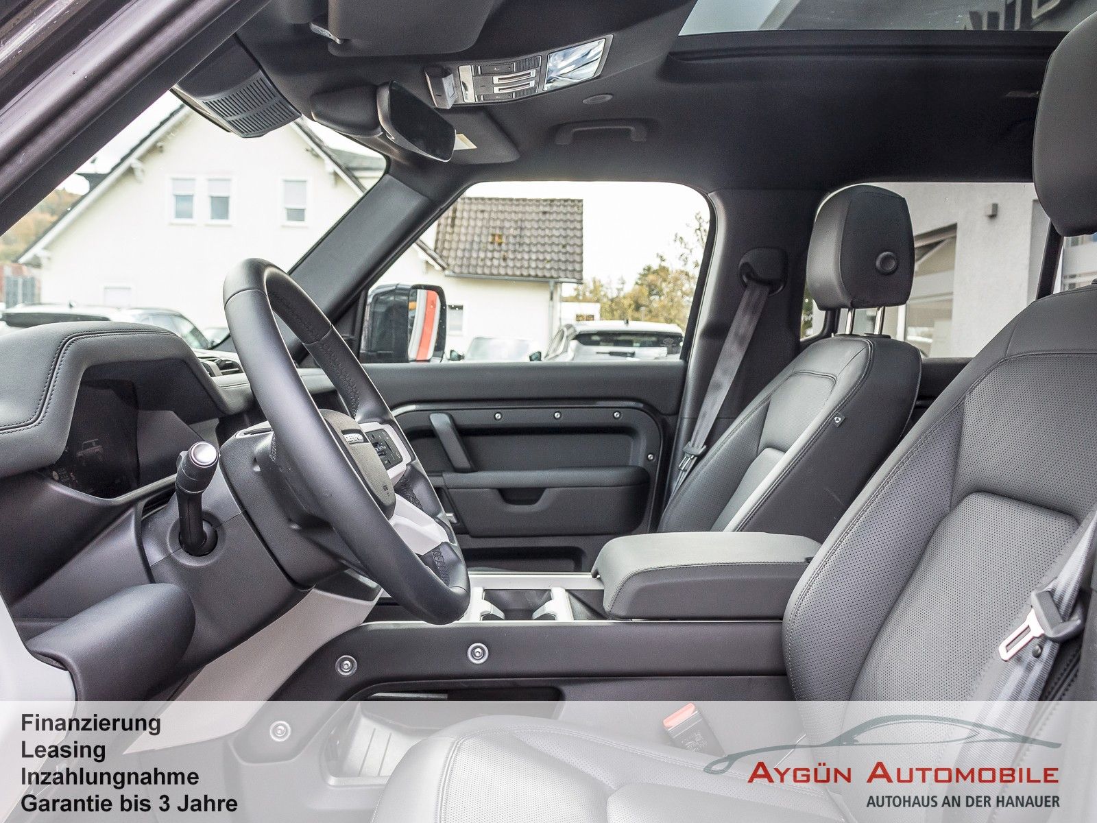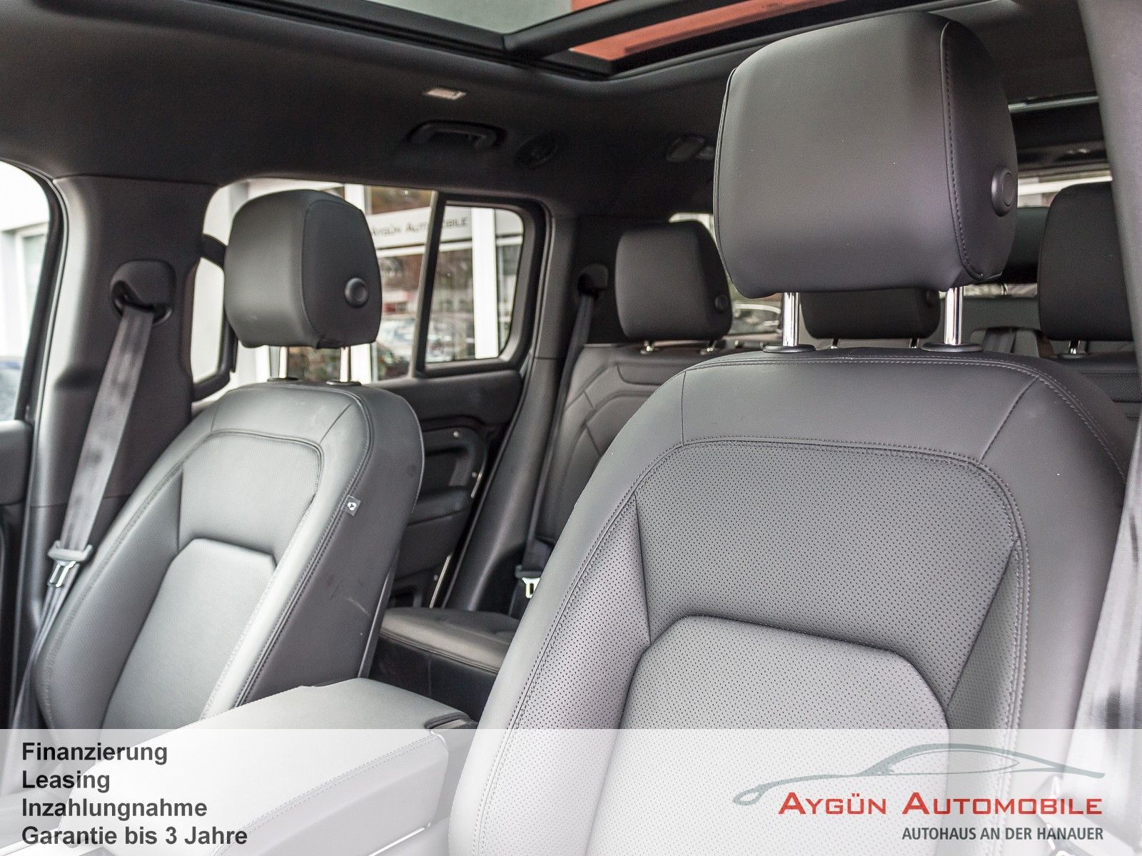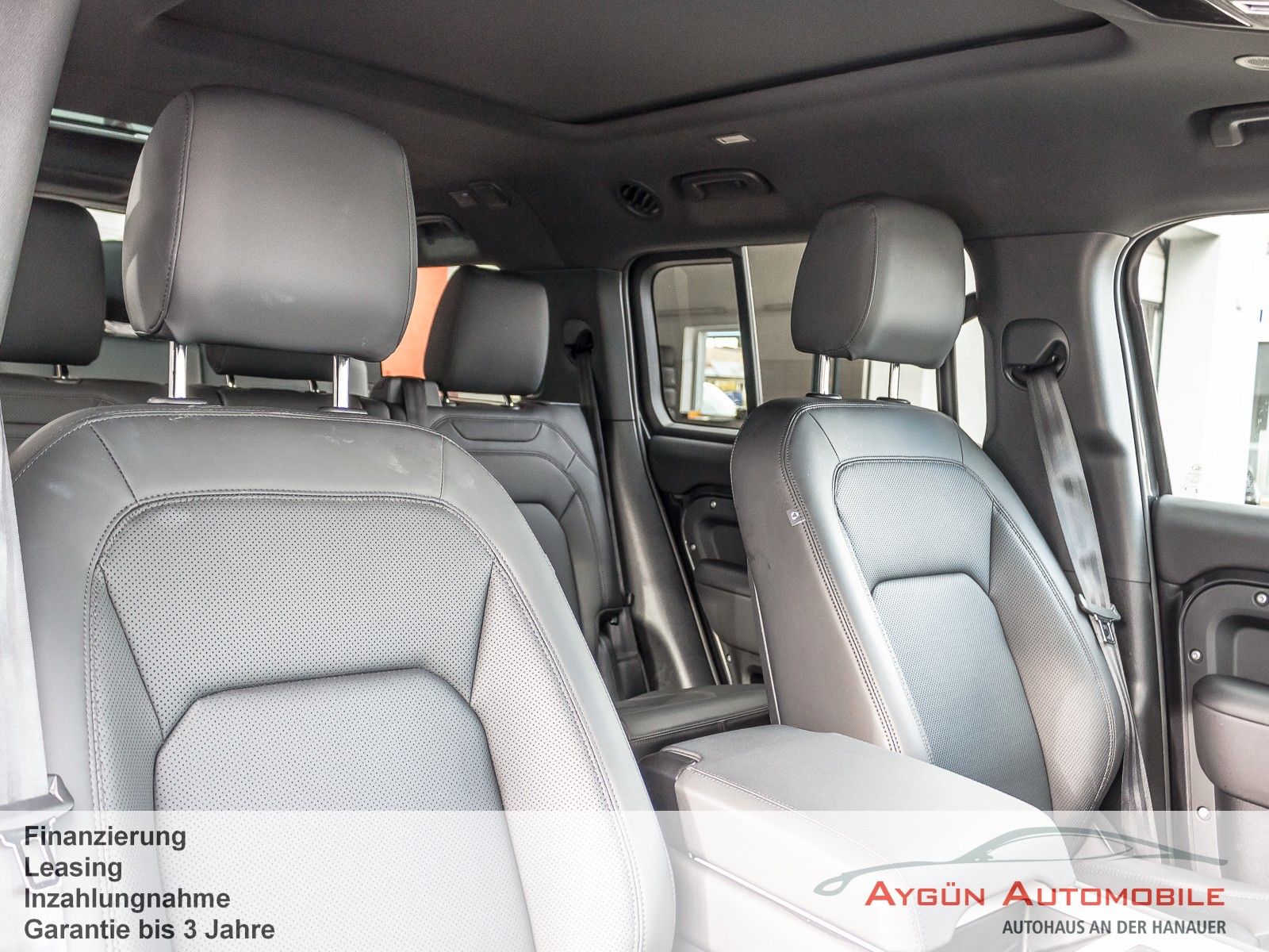 5-Jahre Herstellergarantie ab ErstzulassungSonderausstattung: KOMFORT-PAKET PLUS Kühlfach Plus in vorderer Mittelkonsole Hecktür mit Soft-Close-Automatik WINTER PAKET Scheinwerferreinigungsanlage Frontscheibe, beheizbar Scheibenwaschdüsen, beheizbar Multifunktions-Lederlenkrad, beheizbar Carpathian Grey Premium Metallic Dunkel getönte Scheiben ab B-Säule Erweitertes Black Pack Vordersitze, 12-fach elektrisch verstellbar, beheiz- und kühlbar, mit Memory-Funktion und 2-fach manuell verstellbaren Kopfstützen Drei vollwertige Sitze in der 3. Sitzreihe, manuell verstellbar, beheizbar Rückbank, im Verhältnis 60:40 teilbar, beheizbar, verschiebbar, 4-Zonen Klimaautomatik Einstiegsleisten aus Edelstahl mit Defender Schriftzug, beleuchtet Head-up Display Anhängerkupplung, abnehmbar