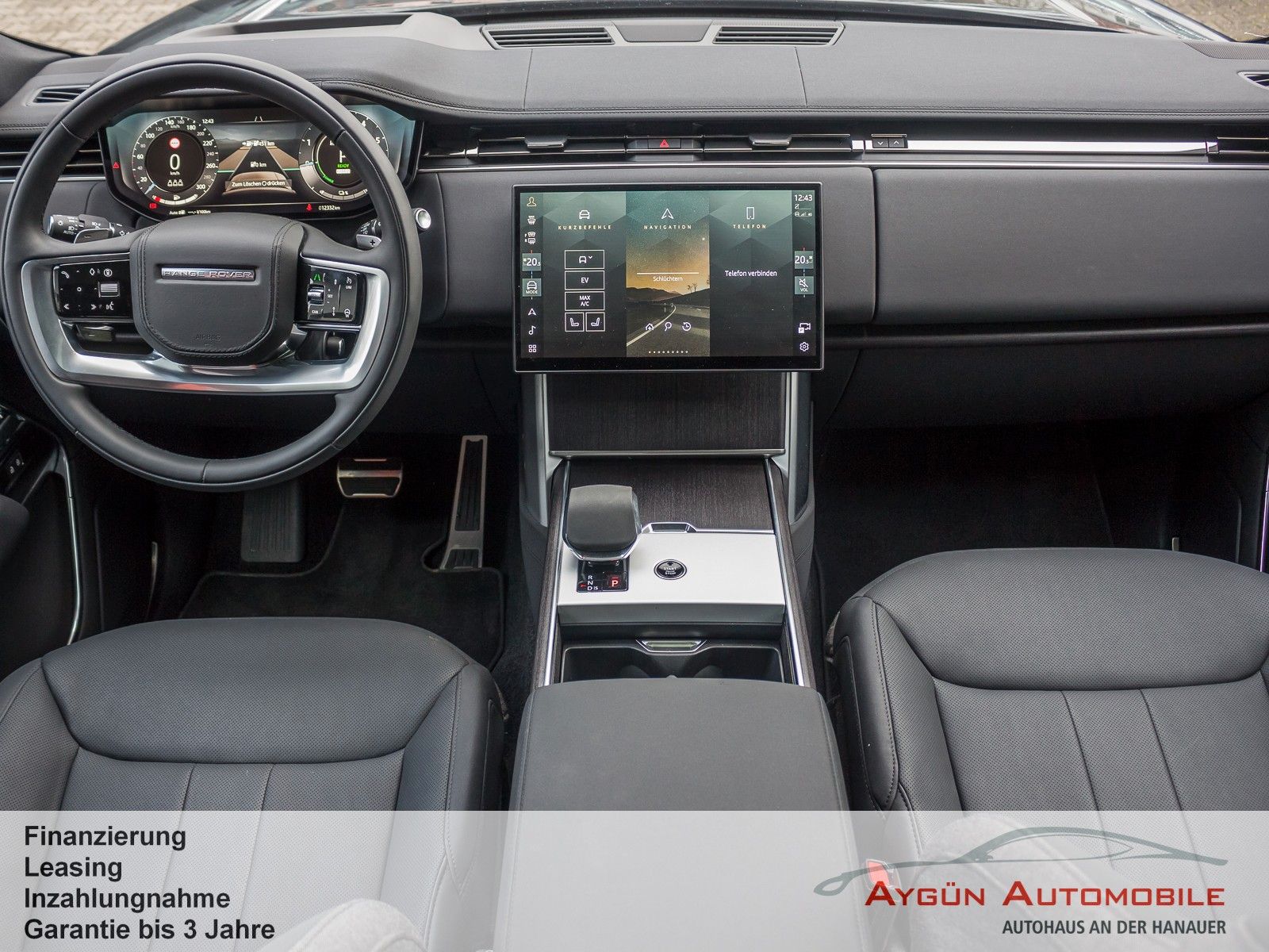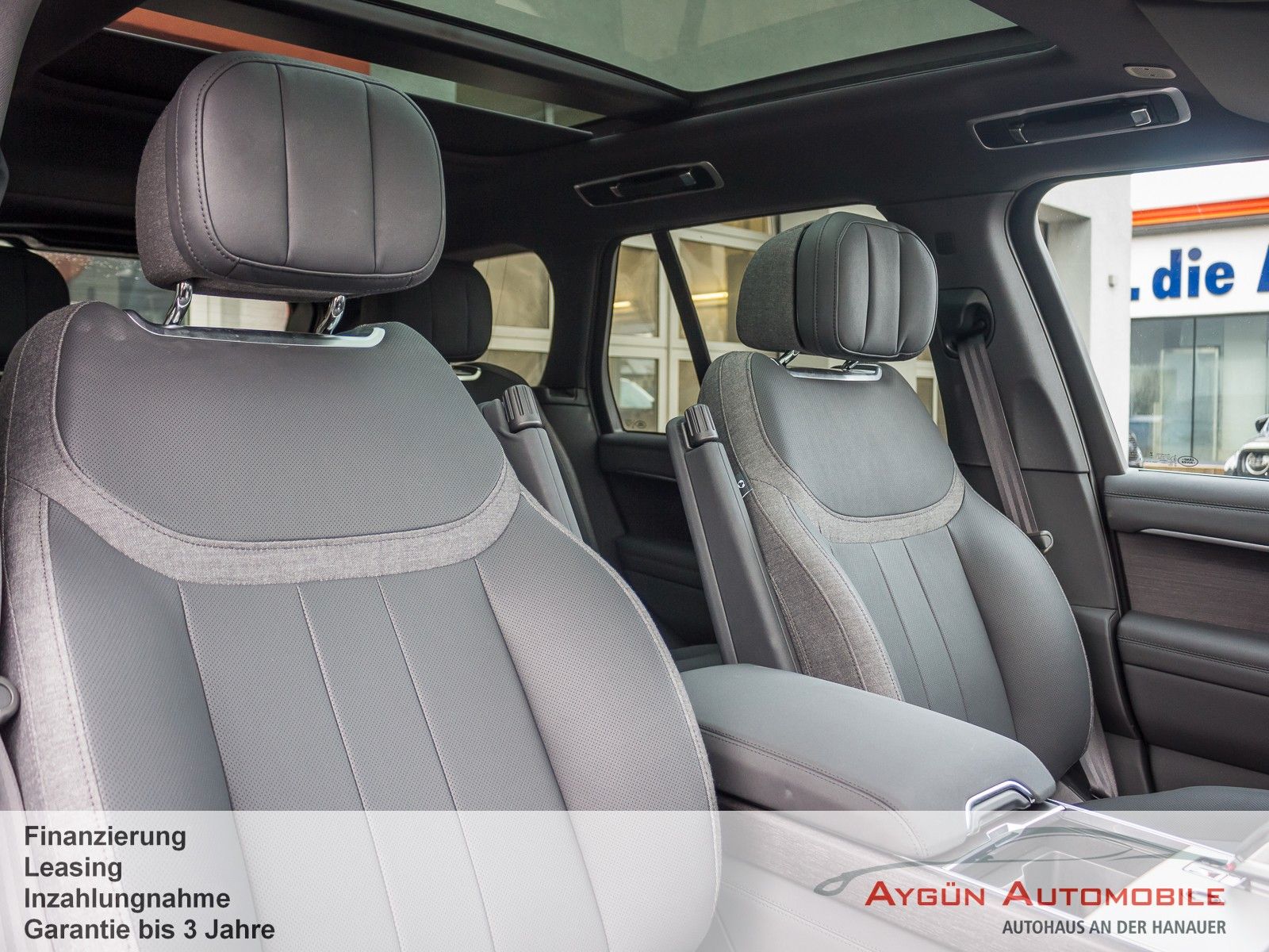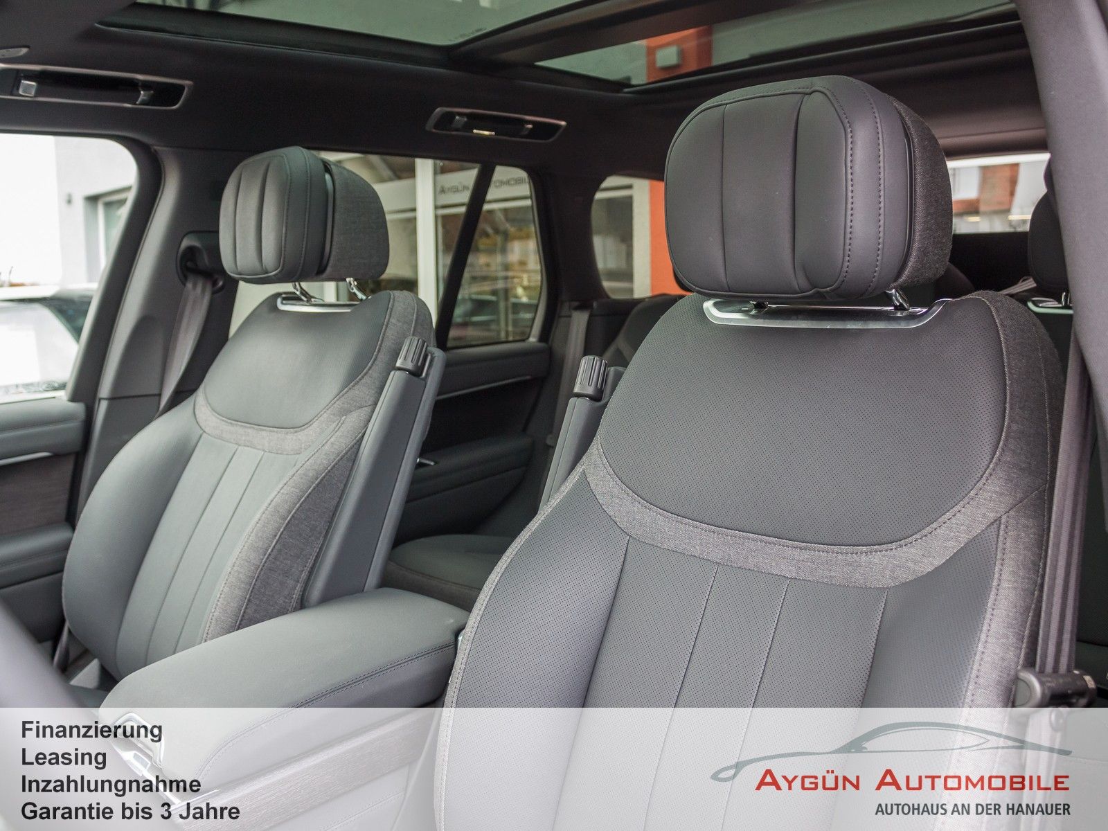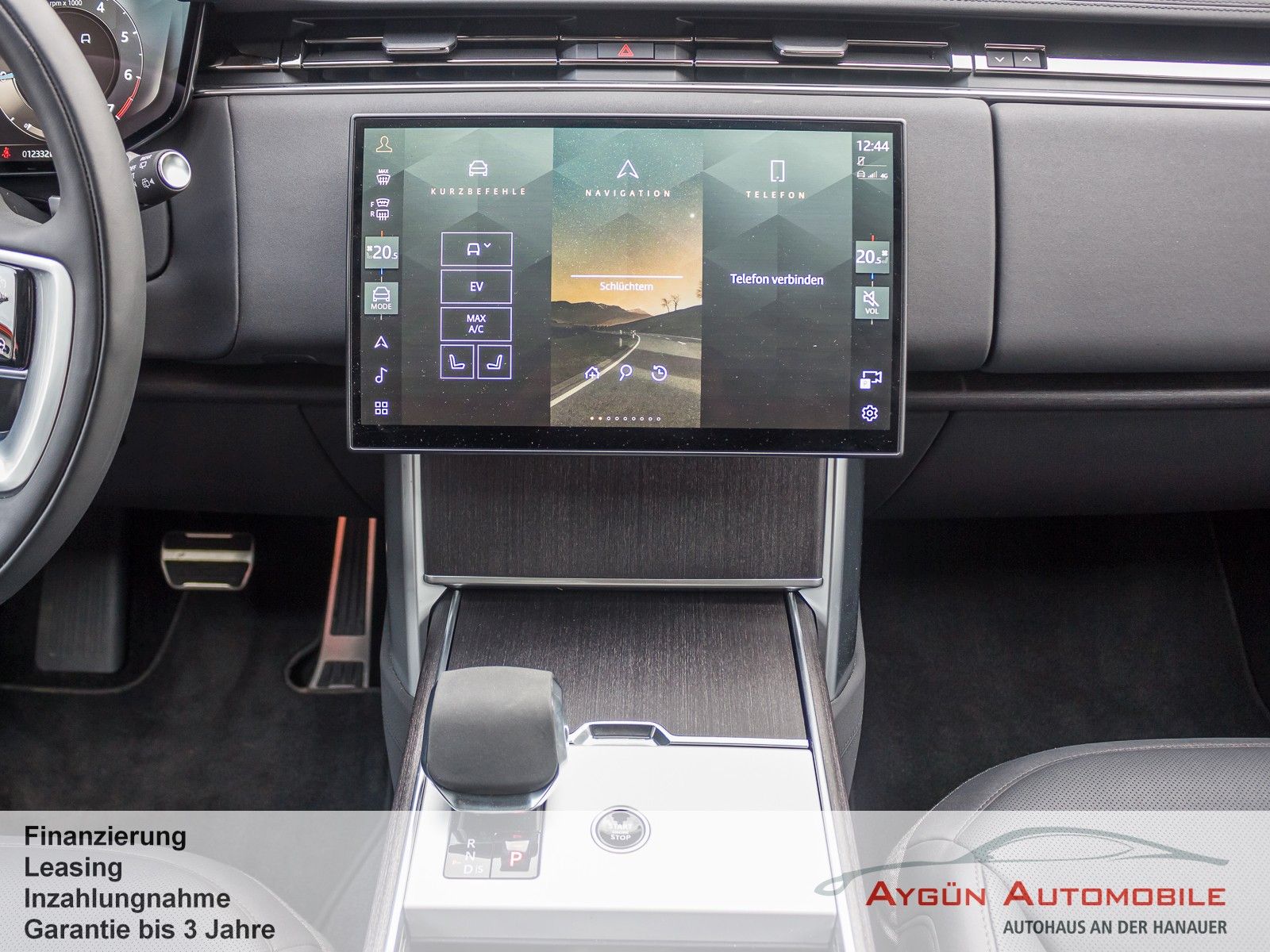 Serienausstattung Adaptives Fahrwerk Allradantrieb Allradlenkung Anfahrhilfe Antiblockiersystem Auto-Hold Automatische Einstiegsabsenkung Bergabfahrhilfe Berganfahrhilfe Dynamische Stabilitätskontrolle Eco-Modus Elektrische Parkbremse Elektromechanische Servolenkung Elektronisch geregelte Luftfederung Elektronische Bremskraftverteilung Elektronische Traktionskontrolle Kurvenbremskontrolle Notfall-Bremsassistent Schaltwippen Terrain Response 2 Wankneigungskontrolle Zweistufiges Verteilergetriebe (Straße/Geländeuntersetzung) Außenspiegel, elektrisch einklapp- und beheizbar, mit Abblendautomatik und Umfeldbeleuchtung Frontscheibe, beheizbar Heckscheibe, beheizbar Nebelscheinwerfer vorne Nebelschlußleuchten Scheinwerferreinigungsanlage Sensorgesteuertes Fahrlicht Sitze in perforiertem Semi-Anilin-Leder in Ebony mit Interieur in Ebony Erweitertes Lederpaket- Das erweiterte Lederpaket umfasst: - Instrumentendisplay, obere Einfassung aus Leder - Instrumentendisplay, untere Einfassung aus Leder - Mittelkonsole, untere Seitenteile aus Leder - Türarmlehne, obere Abdeckung aus Leder - Türarmlehne, untere Abdeckung aus Leder Lenksäule, elektrisch verstellbar Multifunktions-Soft-Grain-Lederlenkrad 3-Zonen-Klimaautomatik Innenraumbeleuchtung, konfigurierbar Luftqualitätssensor Luftreinigungssystem Pro im Innenraum mit PM2.5 Filter Heckklappe, zweiteilig, elektrisch, mit Gestensteuerung Keyless Entry Soft-Close-Automatik (sanftes Türschließen) 12,3-Zoll TFT-Instrumentendisplay 12V-Anschlüsse in 1. und 2. Sitzreihe All Terrain Info Centre Android Auto Apple CarPlay Bluetooth-fähiges Telefonsystem Bluetooth-Audiostreaming Kabelloses Aufladen für Smartphones, mit Signalverstärker- Pivi Pro Sprachsteuerung USB-Anschlüsse Digitales Radio (DAB+) Meridian 3D Surround-Soundsystem - 800W Verstärkerleistung - 18 Lautsprecher und ein Zweikanal-Subwoofer - Meridian Digital Signal Processing - Meridian Cabin Correction - Meridian Digital Dither Shaping - Trifield, 3D Trifield - aktiv 13,1-Zoll Touchscreen Head-up Display 3D-Surround-Kamerasystem inkl. Wade Sensing Adaptive Geschwindigkeitsregelung (Adaptive Cruise Control, ACC) mit Lenkassistent Autonomer Notfall-Bremsassistent (Autonomous Emergency Braking, AEB) Einparkhilfe vorne und hinten Aufmerksamkeitsassistent Kollisionswarnystem bei Rückwärtsfahrten Kollisionswarnsystem Monitor Parkassistent Spurhalteassistent Toter-Winkel-Spurassistent inkl. Annäherungssensor Verkehrszeichenerkennung mit adaptivem Geschwindigkeitsbegrenzer