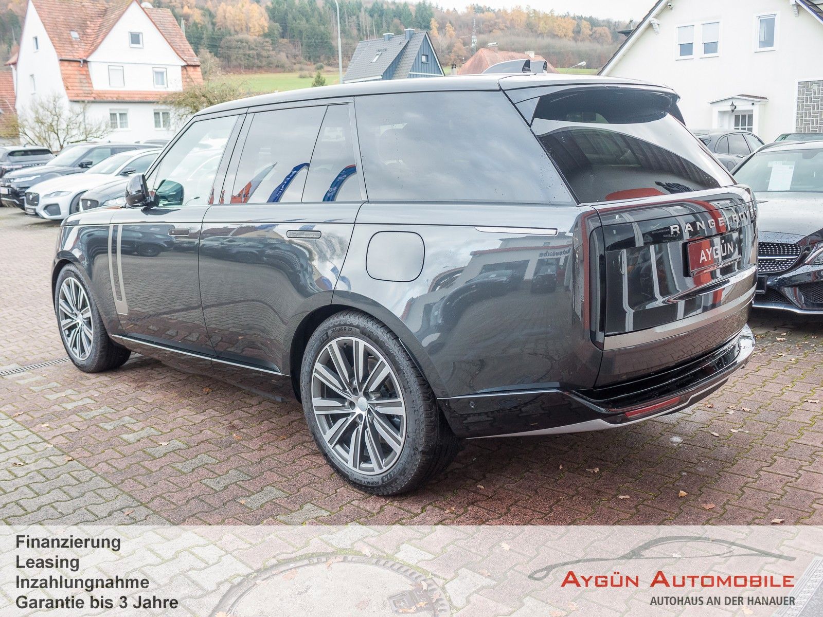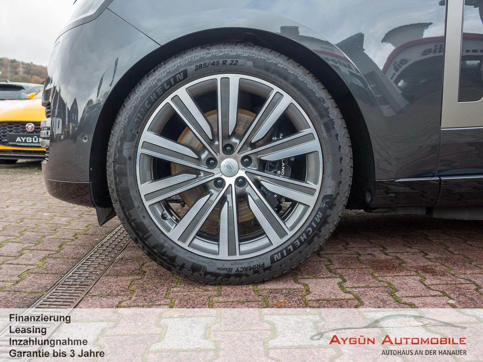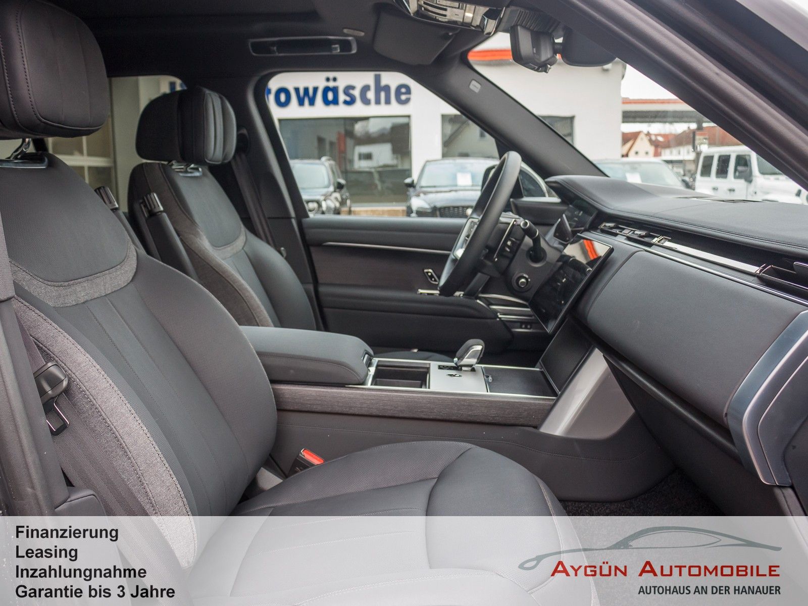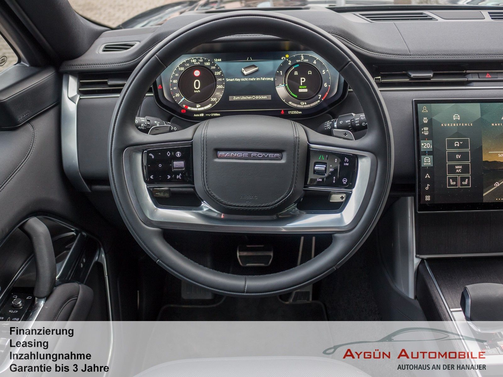 Serienausstattung Adaptives Fahrwerk Allradantrieb Allradlenkung Anfahrhilfe Antiblockiersystem Auto-Hold Automatische Einstiegsabsenkung Bergabfahrhilfe Berganfahrhilfe Dynamische Stabilitätskontrolle Eco-Modus Elektrische Parkbremse Elektromechanische Servolenkung Elektronisch geregelte Luftfederung Elektronische Bremskraftverteilung Elektronische Traktionskontrolle Kurvenbremskontrolle Notfall-Bremsassistent Schaltwippen Terrain Response 2 Wankneigungskontrolle Zweistufiges Verteilergetriebe (Straße/Geländeuntersetzung) Außenspiegel, elektrisch einklapp- und beheizbar, mit Abblendautomatik und Umfeldbeleuchtung Frontscheibe, beheizbar Heckscheibe, beheizbar Nebelscheinwerfer vorne Nebelschlußleuchten Scheinwerferreinigungsanlage Sensorgesteuertes Fahrlicht Sitze in perforiertem Semi-Anilin-Leder in Ebony mit Interieur in Ebony Erweitertes Lederpaket- Das erweiterte Lederpaket umfasst: - Instrumentendisplay, obere Einfassung aus Leder - Instrumentendisplay, untere Einfassung aus Leder - Mittelkonsole, untere Seitenteile aus Leder - Türarmlehne, obere Abdeckung aus Leder - Türarmlehne, untere Abdeckung aus Leder Lenksäule, elektrisch verstellbar Multifunktions-Soft-Grain-Lederlenkrad 3-Zonen-Klimaautomatik Innenraumbeleuchtung, konfigurierbar Luftqualitätssensor Luftreinigungssystem Pro im Innenraum mit PM2.5 Filter Heckklappe, zweiteilig, elektrisch, mit Gestensteuerung Keyless Entry Soft-Close-Automatik (sanftes Türschließen) 12,3-Zoll TFT-Instrumentendisplay 12V-Anschlüsse in 1. und 2. Sitzreihe All Terrain Info Centre Android Auto Apple CarPlay Bluetooth-fähiges Telefonsystem Bluetooth-Audiostreaming Kabelloses Aufladen für Smartphones, mit Signalverstärker- Pivi Pro Sprachsteuerung USB-Anschlüsse Digitales Radio (DAB+) Meridian 3D Surround-Soundsystem - 800W Verstärkerleistung - 18 Lautsprecher und ein Zweikanal-Subwoofer - Meridian Digital Signal Processing - Meridian Cabin Correction - Meridian Digital Dither Shaping - Trifield, 3D Trifield - aktiv 13,1-Zoll Touchscreen Head-up Display 3D-Surround-Kamerasystem inkl. Wade Sensing Adaptive Geschwindigkeitsregelung (Adaptive Cruise Control, ACC) mit Lenkassistent Autonomer Notfall-Bremsassistent (Autonomous Emergency Braking, AEB) Einparkhilfe vorne und hinten Aufmerksamkeitsassistent Kollisionswarnystem bei Rückwärtsfahrten Kollisionswarnsystem Monitor Parkassistent Spurhalteassistent Toter-Winkel-Spurassistent inkl. Annäherungssensor Verkehrszeichenerkennung mit adaptivem Geschwindigkeitsbegrenzer