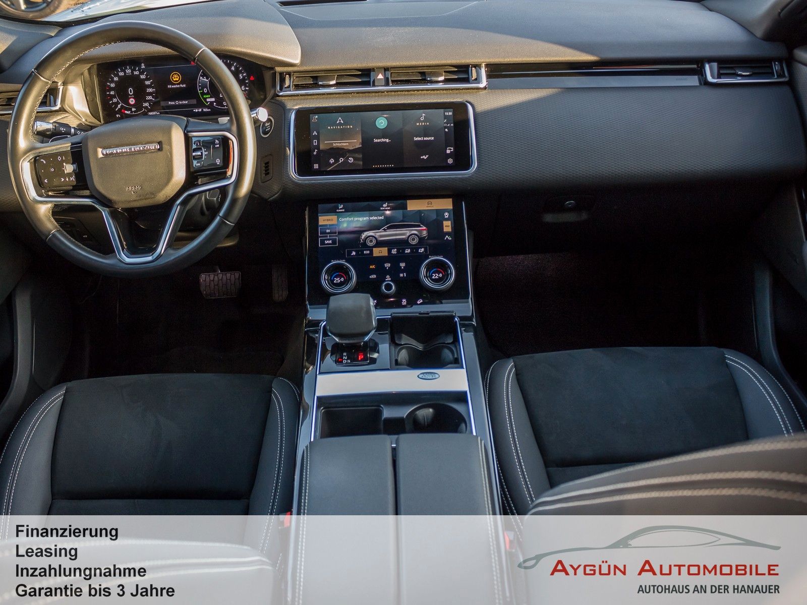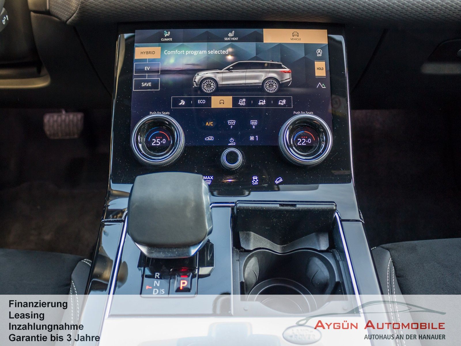 Serienausstattung 8-Gang-Automatikgetriebe Adaptive Dynamics Anfahrhilfe Antiblockiersystem Bergabfahrhilfe Berganfahrhilfe Bremskraft-Entriegelungssteuerung Dynamische Stabilitätskontrolle Elektrische Parkbremse Elektromagnetische Servolenkung, geschwindigkeitsabhängig Elektronische Bremskraftverteilung Elektronische Traktionskontrolle Kurvenbremskontrolle Offenes Differenzial mit Torque Vectoring by Braking (TVBB) Terrain Response mit Dynamik Programm Wankneigungskontrolle Außenspiegel, elektrisch einstell- und beheizbar Frontscheibe aus schalldämmendem Verbundglas Heckscheibe, beheizbar mit Timer Heckscheibenwischer Begrüßungslicht Nebelschlussleuchten Regensensor Sensorgesteuertes Fahrlicht P400e Emblem Ladekabel für Ladestationen (Mode-3-Kabel) Heckspoiler Türgriffe, herausfahrbar Sitze in Luxtec und Premium-Velours in Ebony, Interieur in Ebony Lenksäule, manuell verstellbar Multifunktions-Lederlenkrad 2-Zonen-Klimaautomatik Ambiente-Innenraumbeleuchtung Einstiegsleisten vorne aus Aluminium mit Range Rover Schriftzug Handschuhfach, verriegelbar Innenrückspiegel mit Abblendautomatik Getränkehalter vorne und hinten Kopfstützen in zweiter Sitzreihe Kopfstützen vorn Ladekanten-Schutzleiste aus Aluminium Laderaumabdeckung Innenraumluftfilter Rückbank, im Verhältnis 40:20:40 teilbar Sonnenblenden mit beleuchteten Schminkspiegeln Start/Stopp-Taste Zweiteilige Mittelarmlehne vorne, verschiebbar Keyless Entry Sprachsteuerung Die Sprachsteuerung ist nicht für das Navigationssystem verfügbar 1 12V-Anschluss in 2. Sitzreihe 1 12V-Anschluss vorne 2 USB-Anschlüsse vorne (1 x USB-A, 1 x USB-C) Android Auto Apple CarPlay Bluetooth Konnektivität Pivi Pro mit Navigation Digitales Radio (DAB+) Land Rover Soundsystem 180 W, 8 Lautsprecher 5-Zoll TFT-Bordcomputer 12,3-Zoll TFT-Instrumentendisplay Touch Pro Duo mit zwei 10-Zoll Touchscreens Anhängerstabilitätshilfe Aufmerksamkeitsassistent Autonomer Notfall-Bremsassistent Einparkhilfe vorne und hinten Geschwindigkeitsregelung mit Geschwindigkeitsbegrenzer Rückfahrkamera Spurhalteassistent Verkehrszeichenerkennung mit adaptivem Geschwindigkeitsbegrenzer 6 Airbags Acoustic Vehicle Alerting - System (AVAS) Alarmanlage Bremsbelagverschleißanzeige Erweiterter Notfall-Bremsassistent ISOFIX-Befestigungspunkte im Fond (äußere Sitze) Kindersicherung, elektrisch Warnhinweis bei Nichtanlegen des Sicherheitsgurts Zentrale Türverriegelung