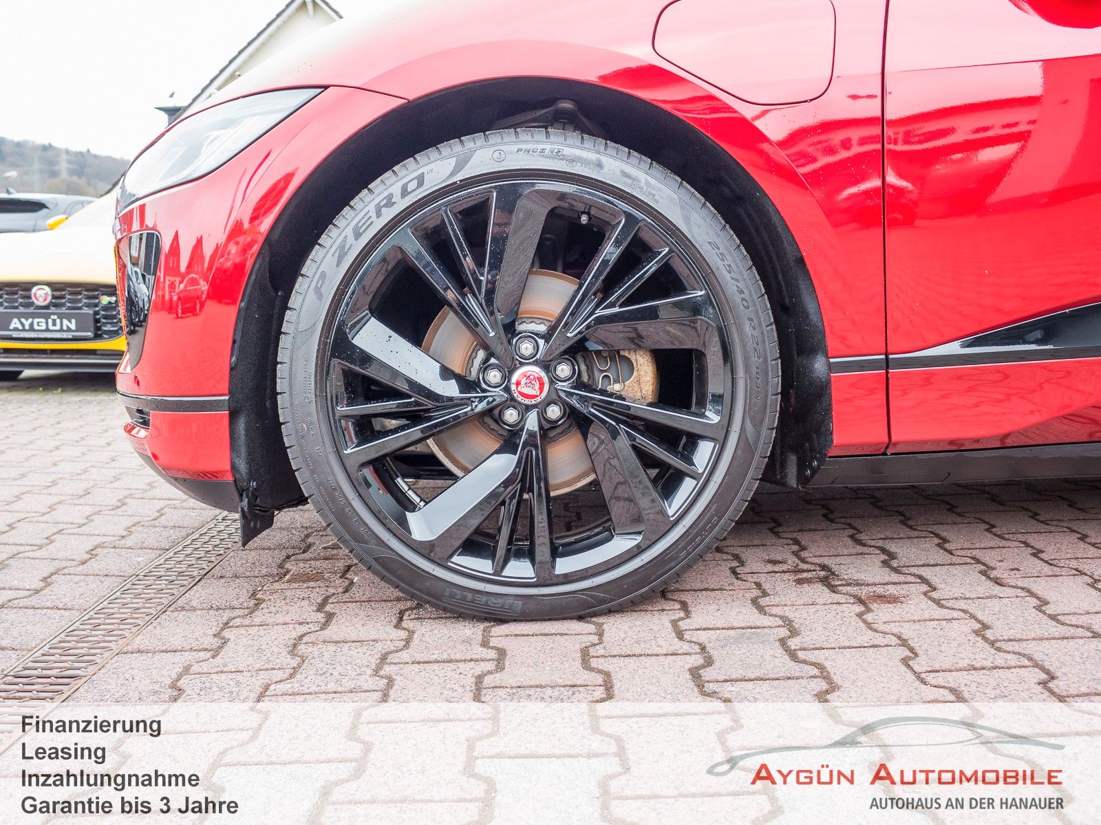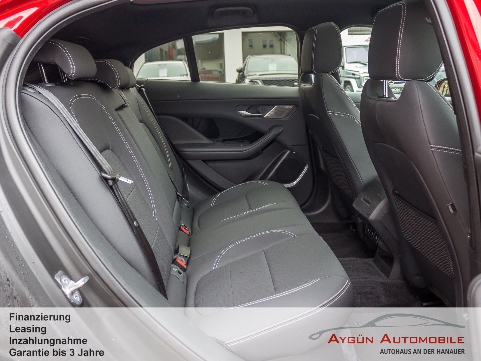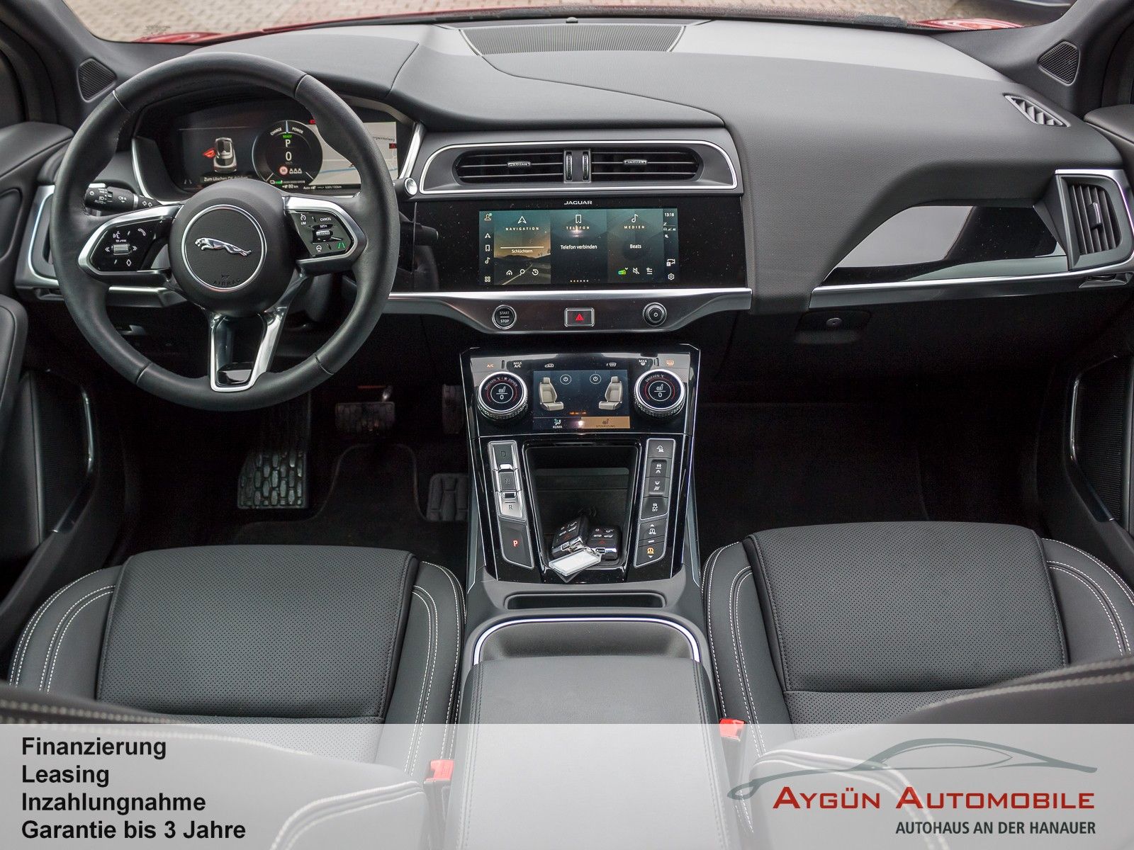 SONDERAUSSTATTUNG Acoustic Vehicle Alerting - System (AVAS) Black Pack Premium Black Pack Elektronisch geregelte Luftfederung Heckspoiler Black Pack 22-Zoll Leichtmetallfelgen mit 5 Doppelspeichen, Gloss Black (Style 5056) Toter-Winkel-Assistenz-Paket Kollisionswarnsystem bei Rückwärtsfahrten mit Notfallbremsung Toter-Winkel-Spurassistent Winter-Paket Frontscheibe, beheizbar Scheibenwaschdüsen, beheizbar Scheinwerferreinigungsanlage Sport-Lederlenkrad, beheizbar Firenze Red Metallic Außenspiegel, elektrisch einklapp- und beheizbar, mit Abblendautomatik auf Fahrerseite und Umfeldbeleuchtung Dunkel getönte Scheiben ab B-Säule LED-Scheinwerfer mit LED-Signatur und Fernlicht mit Abblendautomatik (Auto High Beam Assist, AHBA) Panoramadach Vordersitze, 8-fach verstellbar (2-fach elektrisch, 6-fach manuell), beheizbar - Vor/zurück - Sitzhöhe - Neigung der Rückenlehne, elektrisch verstellbar - Kopfstützenhöhe Dachhimmel in Morzine (Stoff) - Ebony 2 Getränkehalter vorne mit Abdeckung Premium-Fußmatten Heckklappe, elektrisch Kabelloses Aufladen für Smartphones Unterer TouchscreenSERIENAUSSTATTUNG Allradantrieb All Wheel Drive, AWD All Surface Progress Control ASPC Bremsenergierückgewinnung, erweitert Differenzial mit Torque Vectoring by Braking Dynamische Stabilitätskontrolle Elektrische Parkbremse Elektromechanische Servolenkung, geschwindigkeitsabhängig JaguarDrive Control Kühlergrilllamellen, aktiv Frunk (Gepäckraum vorne) JAGUAR Schriftzug und Leaper Außenspiegel, beheizbar, mit Umfeldbeleuchtung Frontscheibe aus schalldämmendem Verbundglas Heckscheibe aus Wärmeschutzglas Heckscheibe, beheizbar Seitenscheiben vorne und hinten aus gehärtetem Glas Automatische Leuchtweitenregulierung Blinker mit Tippfunktion Begrüßungslicht Nebelschlussleuchten Regensensor Sportsitze in Luxtec in Ebony mit Interieur in Ebony/Ebony Rücksitze im Verhältnis 40:20:40 teilbar, mit Mittelarmlehne Dekorelemente in Gloss Black Dachhimmel in Morzine (Stoff) - Light Oyster Multifunktions-Lederlenkrad 3 Kopfstützen im Fond Ambiente Innenraumbeleuchtung Außentemperaturanzeige Einstiegsleisten aus Aluminium mit Jaguar Schriftzug Getränkehalter vorne und hinten Innenrückspiegel mit Abblendautomatik Leseleuchten vorne und hinten Sonnenblenden mit beleuchteten Schminkspiegeln Teppich - Ebony 11-kW-OnBoard-Charger (3-phasig) 2-Zonen-Klimaautomatik Ablagefach unter den Rücksitzen Fahrradträgervorrichtung am Heck Handschuhfach, verriegelbar Keyless Entry Ladekabel für Ladestationen (Mode-3-Kabel) Standheizung, elektrisch Zeitgesteuertes Laden 12 V Anschlüsse Amazon Alexa Android Auto, kabellos Apple CarPlay, kabellos Bluetooth-fähiges Telefonsystem Drahtlose Software-Updates Sprachsteuerung Digitales Radio (DAB+) Jaguar Soundsystem 140 W, 6 Lautsprecher 10-Zoll-Touchscreen 12,3-Zoll TFT-Instrumentendisplay Pivi Pro mit Navigation Anfahrhilfe (Low Traction Launch) Aufmerksamkeitsassistent Autonomer Notfall-Bremsassistent (Autonomous Emergency Braking, AEB) Berganfahrhilfe Einparkhilfe vorne und hinten Geschwindigkeitsregelung mit Geschwindigkeitsbegrenzer Rückfahrkamera Spurhalteassistent Verkehrszeichenerkennung mit adaptivem Geschwindigkeitsbegrenzer 6 Airbags Acoustic Vehicle Alerting - System (AVAS) Active Sound Design Alarmanlage, perimetrisch Bremsbelagverschleißanzeige Kindersicherung, elektrisch Notfall-Bremsassistent Türgriffe vorne mit separaten Verriegelungstasten Ver-/Entriegelungstaste an Fahrertür Verriegelungstaste in Beifahrertür Verzurrösen im Laderaum Warnhinweis bei Nichtanlegen des Sicherheitsgurts