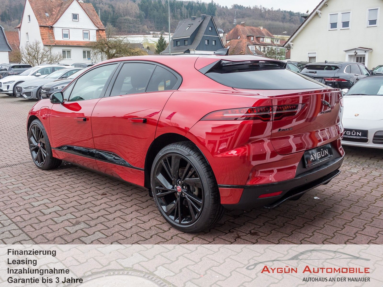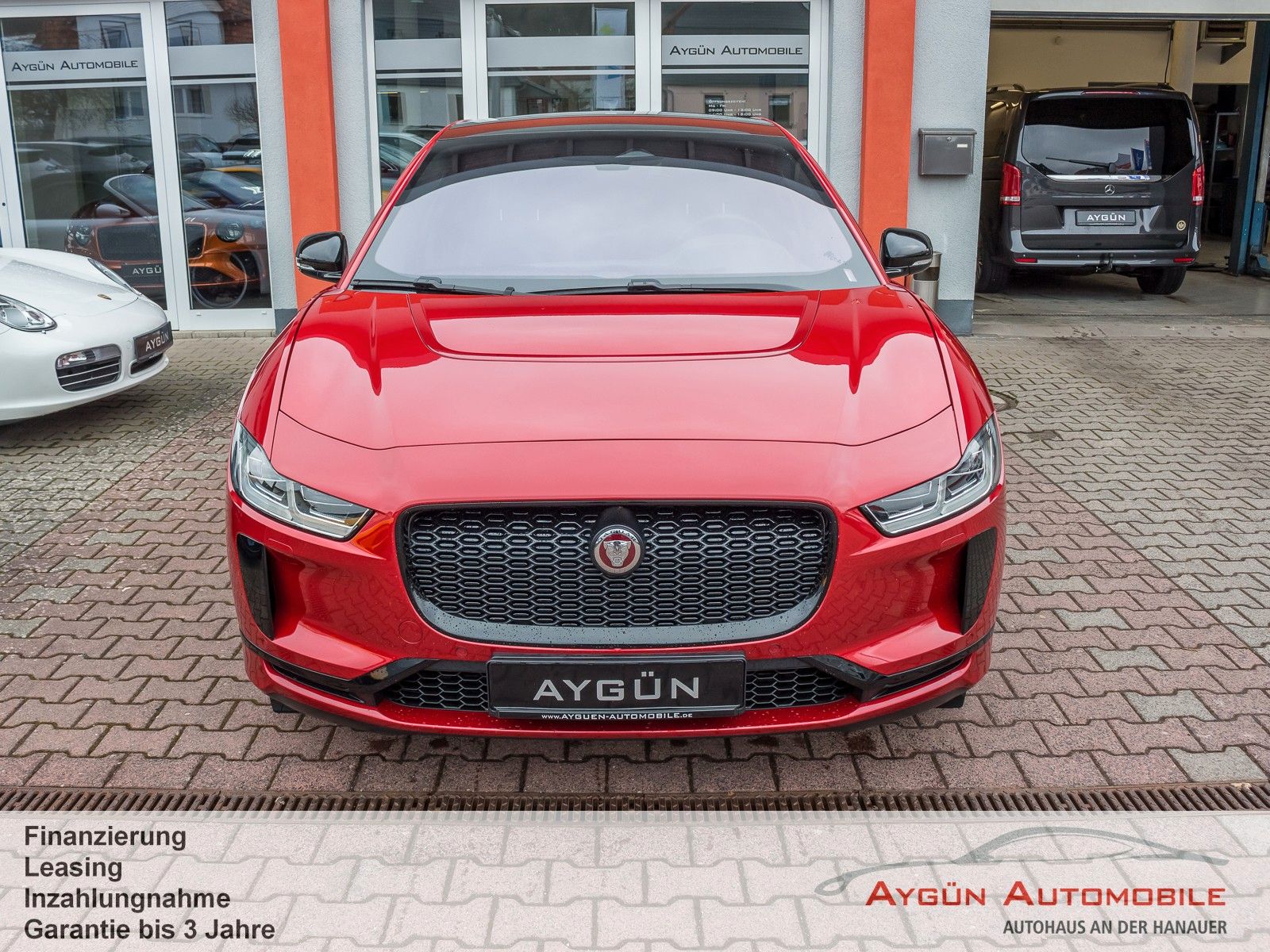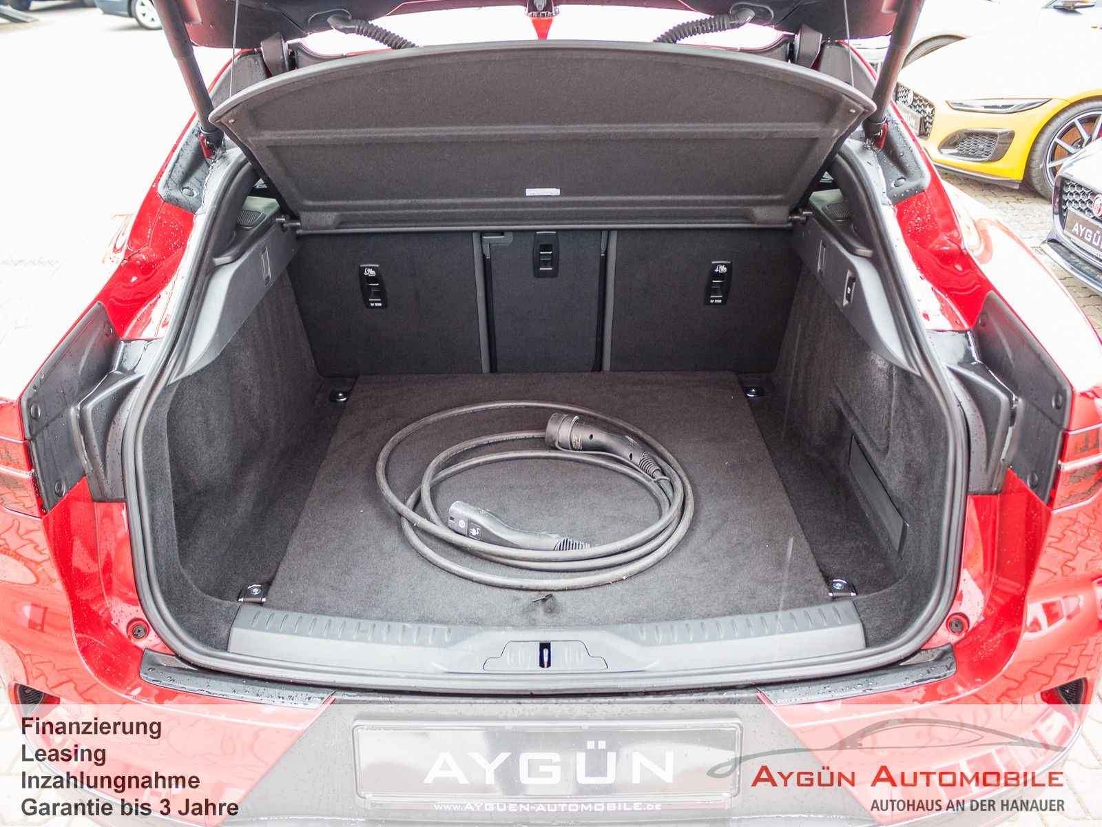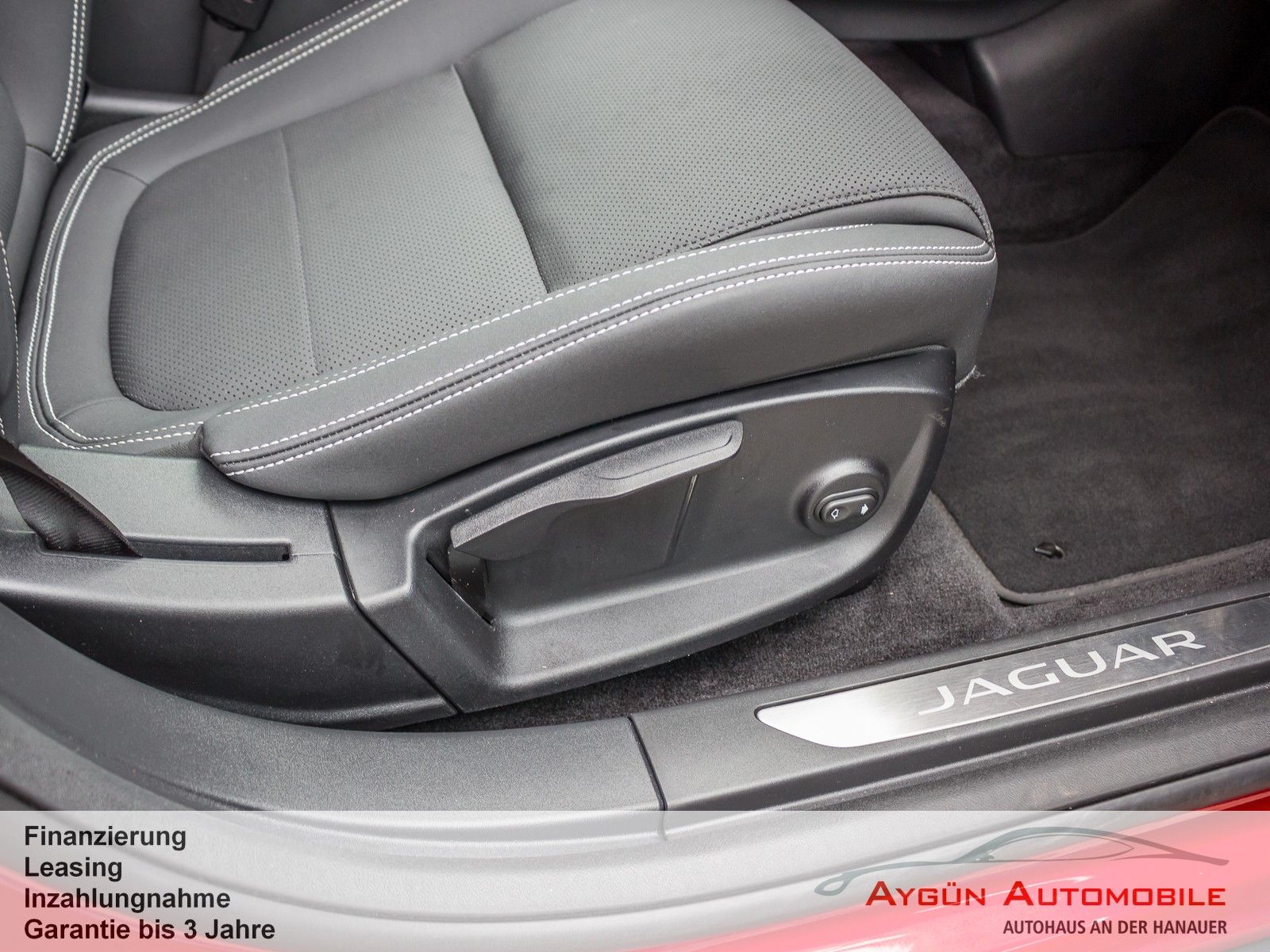 SONDERAUSSTATTUNG Acoustic Vehicle Alerting - System (AVAS) Black Pack Premium Black Pack Elektronisch geregelte Luftfederung Heckspoiler Black Pack 22-Zoll Leichtmetallfelgen mit 5 Doppelspeichen, Gloss Black (Style 5056) Toter-Winkel-Assistenz-Paket Kollisionswarnsystem bei Rückwärtsfahrten mit Notfallbremsung Toter-Winkel-Spurassistent Winter-Paket Frontscheibe, beheizbar Scheibenwaschdüsen, beheizbar Scheinwerferreinigungsanlage Sport-Lederlenkrad, beheizbar Firenze Red Metallic Außenspiegel, elektrisch einklapp- und beheizbar, mit Abblendautomatik auf Fahrerseite und Umfeldbeleuchtung Dunkel getönte Scheiben ab B-Säule LED-Scheinwerfer mit LED-Signatur und Fernlicht mit Abblendautomatik (Auto High Beam Assist, AHBA) Panoramadach Vordersitze, 8-fach verstellbar (2-fach elektrisch, 6-fach manuell), beheizbar - Vor/zurück - Sitzhöhe - Neigung der Rückenlehne, elektrisch verstellbar - Kopfstützenhöhe Dachhimmel in Morzine (Stoff) - Ebony 2 Getränkehalter vorne mit Abdeckung Premium-Fußmatten Heckklappe, elektrisch Kabelloses Aufladen für Smartphones Unterer TouchscreenSERIENAUSSTATTUNG Allradantrieb All Wheel Drive, AWD All Surface Progress Control ASPC Bremsenergierückgewinnung, erweitert Differenzial mit Torque Vectoring by Braking Dynamische Stabilitätskontrolle Elektrische Parkbremse Elektromechanische Servolenkung, geschwindigkeitsabhängig JaguarDrive Control Kühlergrilllamellen, aktiv Frunk (Gepäckraum vorne) JAGUAR Schriftzug und Leaper Außenspiegel, beheizbar, mit Umfeldbeleuchtung Frontscheibe aus schalldämmendem Verbundglas Heckscheibe aus Wärmeschutzglas Heckscheibe, beheizbar Seitenscheiben vorne und hinten aus gehärtetem Glas Automatische Leuchtweitenregulierung Blinker mit Tippfunktion Begrüßungslicht Nebelschlussleuchten Regensensor Sportsitze in Luxtec in Ebony mit Interieur in Ebony/Ebony Rücksitze im Verhältnis 40:20:40 teilbar, mit Mittelarmlehne Dekorelemente in Gloss Black Dachhimmel in Morzine (Stoff) - Light Oyster Multifunktions-Lederlenkrad 3 Kopfstützen im Fond Ambiente Innenraumbeleuchtung Außentemperaturanzeige Einstiegsleisten aus Aluminium mit Jaguar Schriftzug Getränkehalter vorne und hinten Innenrückspiegel mit Abblendautomatik Leseleuchten vorne und hinten Sonnenblenden mit beleuchteten Schminkspiegeln Teppich - Ebony 11-kW-OnBoard-Charger (3-phasig) 2-Zonen-Klimaautomatik Ablagefach unter den Rücksitzen Fahrradträgervorrichtung am Heck Handschuhfach, verriegelbar Keyless Entry Ladekabel für Ladestationen (Mode-3-Kabel) Standheizung, elektrisch Zeitgesteuertes Laden 12 V Anschlüsse Amazon Alexa Android Auto, kabellos Apple CarPlay, kabellos Bluetooth-fähiges Telefonsystem Drahtlose Software-Updates Sprachsteuerung Digitales Radio (DAB+) Jaguar Soundsystem 140 W, 6 Lautsprecher 10-Zoll-Touchscreen 12,3-Zoll TFT-Instrumentendisplay Pivi Pro mit Navigation Anfahrhilfe (Low Traction Launch) Aufmerksamkeitsassistent Autonomer Notfall-Bremsassistent (Autonomous Emergency Braking, AEB) Berganfahrhilfe Einparkhilfe vorne und hinten Geschwindigkeitsregelung mit Geschwindigkeitsbegrenzer Rückfahrkamera Spurhalteassistent Verkehrszeichenerkennung mit adaptivem Geschwindigkeitsbegrenzer 6 Airbags Acoustic Vehicle Alerting - System (AVAS) Active Sound Design Alarmanlage, perimetrisch Bremsbelagverschleißanzeige Kindersicherung, elektrisch Notfall-Bremsassistent Türgriffe vorne mit separaten Verriegelungstasten Ver-/Entriegelungstaste an Fahrertür Verriegelungstaste in Beifahrertür Verzurrösen im Laderaum Warnhinweis bei Nichtanlegen des Sicherheitsgurts