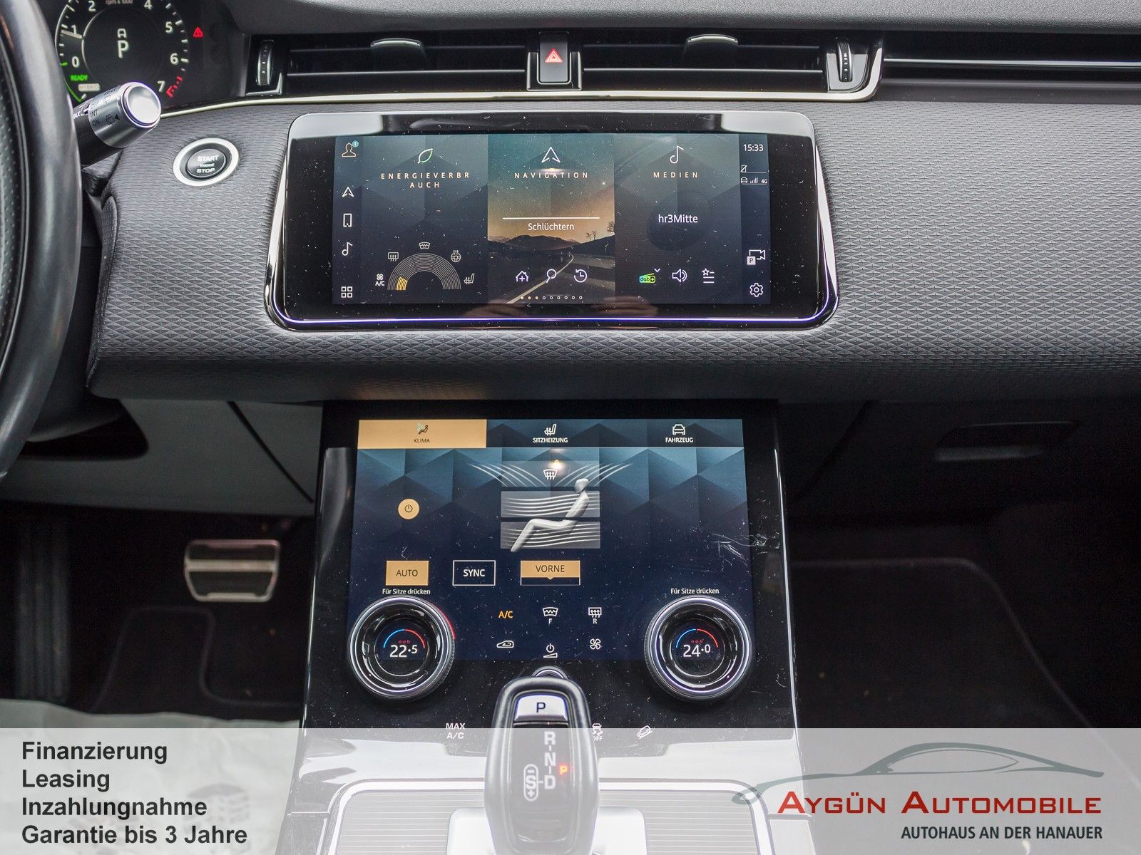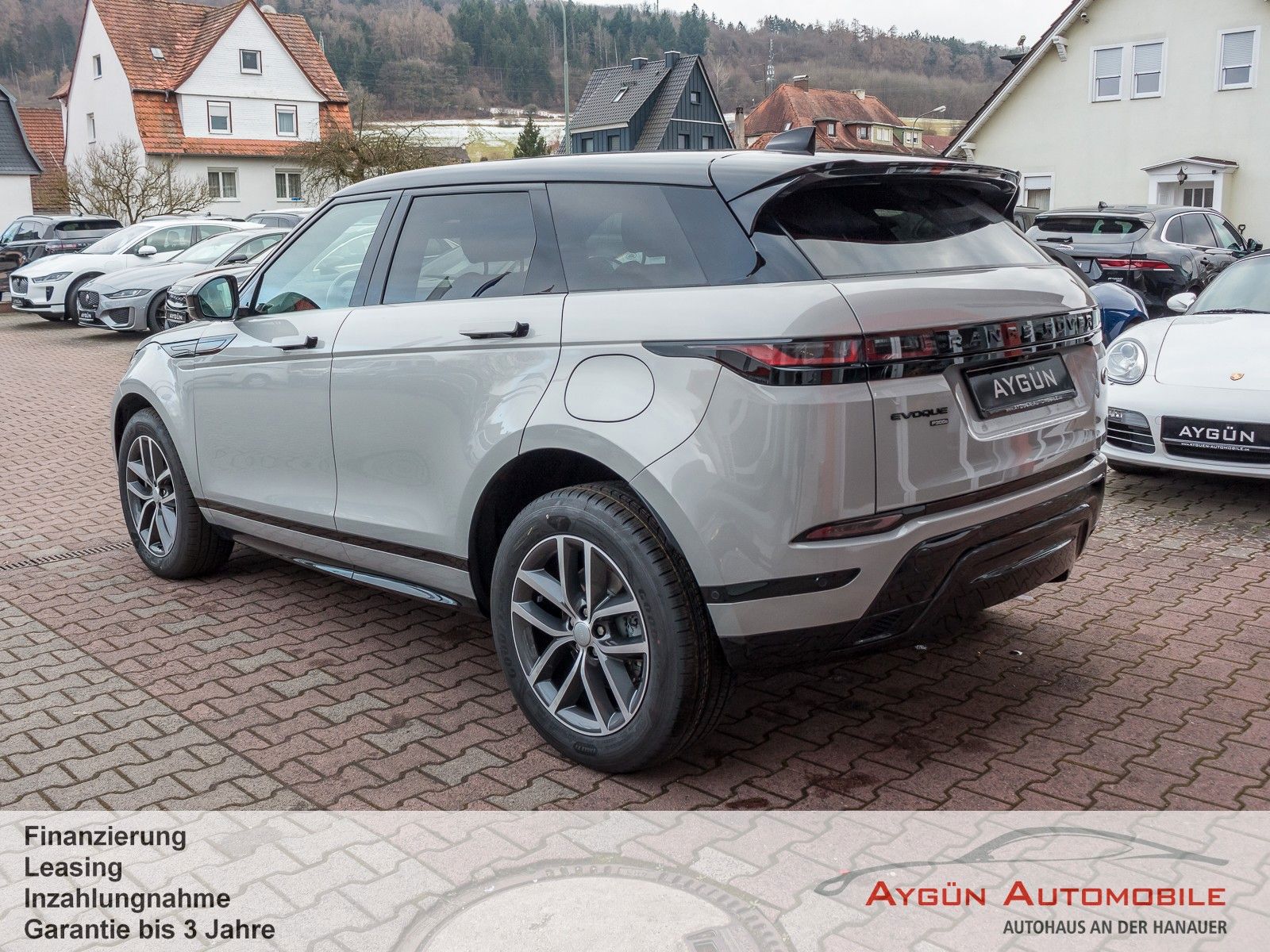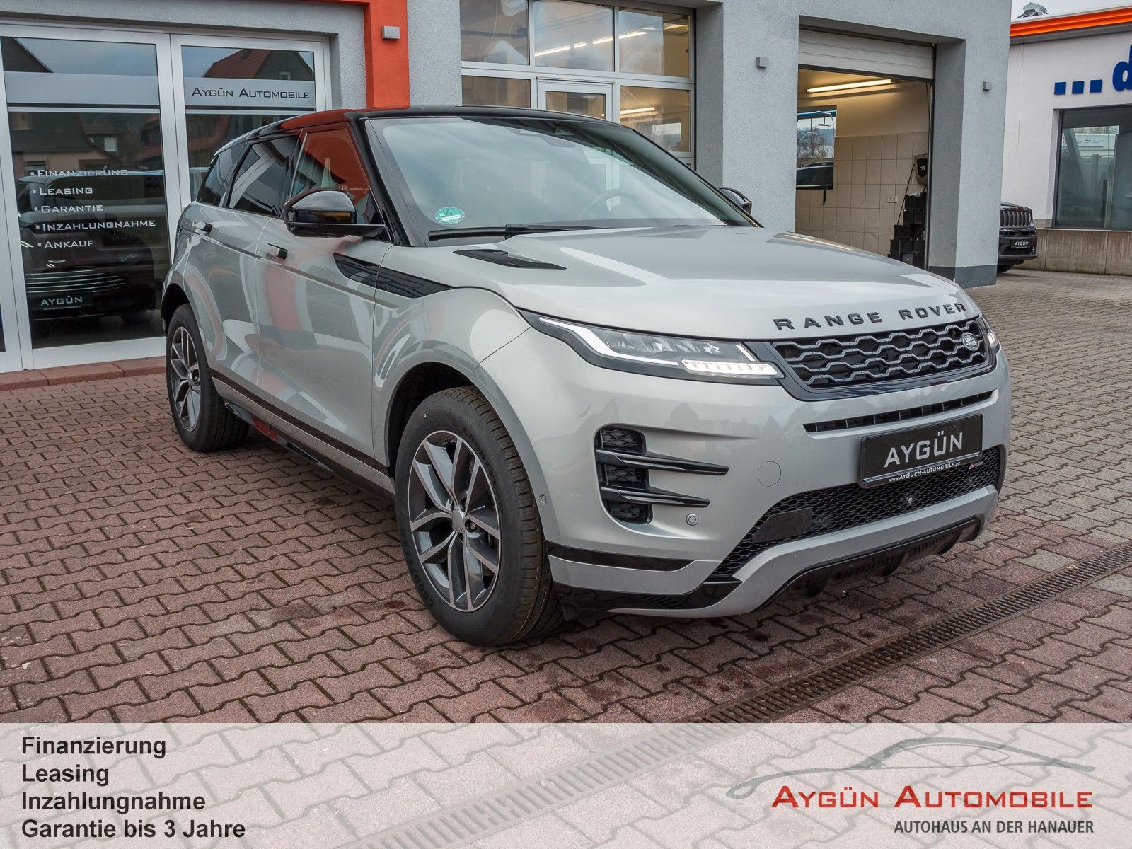 Serienausstattung 8-Gang-Automatikgetriebe, Allradantrieb (AWD) All Terrain Progress Control Anhängerstabilitätshilfe Anfahrhilfe Antiblockiersystem Bergabfahrhilfe (HDC) Berganfahrhilfe Dynamische Stabilitätskontrolle Elektrische Parkbremse Elektrische Servolenkung Elektrischer Hinterradantrieb Elektronische Bremskraftverteilung Elektronische Traktionskontrolle Kurvenbremskontrolle Motorschleppmoment-Regelung Notfall-Bremsassistent (Emergency Brake Assist, EBA) Stopp/Start-System Terrain Response 2 Automatik Torque Vectoring by Braking (TVBB) Wankneigungskontrolle (Roll Stability Control, RSC) Automatische Verriegelung, konfigurierbar Acoustic Vehicle Alerting - System (AVAS) Bremsbelagverschleißanzeige Fußgängerschutzsystem ISOFIX-Befestigungspunkte im Fond (äußere Sitze) Kindersicherung, elektrisch Kopfstützen vorne, passiv Sprachsteuerung Warnhinweis bei Nichtanlegen des Sicherheitsgurts Benzinpartikelfilter (GPF) Tankinhalt ca. 57 Liter Außenspiegel, elektrisch einklapp- und beheizbar, Abblendautomatik auf Fahrerseite und Umfeldbeleuchtung Heckscheibe, beheizbar, mit Timer Heckscheibenwischer Begrüßungslicht Blinklichter, hinten animiert LED-Scheinwerfer mit Tagfahrlicht Manuelle Leuchtweitenregulierung Nebelschlußleuchten Regensensor Sensorgesteuertes Fahrlicht Reifendruckkontrollsystem Reifenreparatursystem Dach in Wagenfarbe Evoque Emblem R-Dynamic Emblem P300e Badge Abschleppösen vorne und hinten Außenspiegelkappen in glänzend Schwarz Außentemperaturanzeige Heckspoiler Elektrisch herausfahrbare Türgriffe Ladekabel für Ladestationen (Mode-3-Kabel) Dachhimmel: Morzine (Stoff) - Ebony Multifunktions-Lederlenkrad in perforiertem Leder Schaltwippen in mattiertem Chrom 2-Zonen-Klimaautomatik Ambiente-Innenraumbeleuchtung Innenrückspiegel mit Abblendautomatik Laderaumbeleuchtung Leseleuchten vorne Mittlere Kopfstütze im Fond Sonnenblenden mit beleuchteten Schminkspiegeln Sonnenbrillenfach in der Dachkonsole Sportliche Edelstahlpedalerie Start/Stopp-Taste Zweiteilige, verschiebbare Mittelarmlehne, vorne ANSCHLUSSPAKET 1 Das Anschlußpaket 1 umfasst: - Mittelkonsole: 12V und 2 x USB - Mittelkonsole Rückseite: 12V - Laderaum: 12V Android Auto Apple CarPlay Bluetooth-fähiges Telefonsystem Pivi Pro mit Nagivation Digitales Radio (DAB+) Land Rover Soundsystem (120 W, 6 Lautsprecher) Aufmerksamkeitsassistent Autonomer Notfall-Bremsassistent Einparkhilfe vorne und hinten Geschwindigkeitsregelung mit Geschwindigkeitsbegrenzer Spurhalteassistent Verkehrszeichenerkennung mit adaptivem Geschwindigkeitsbegrenzer