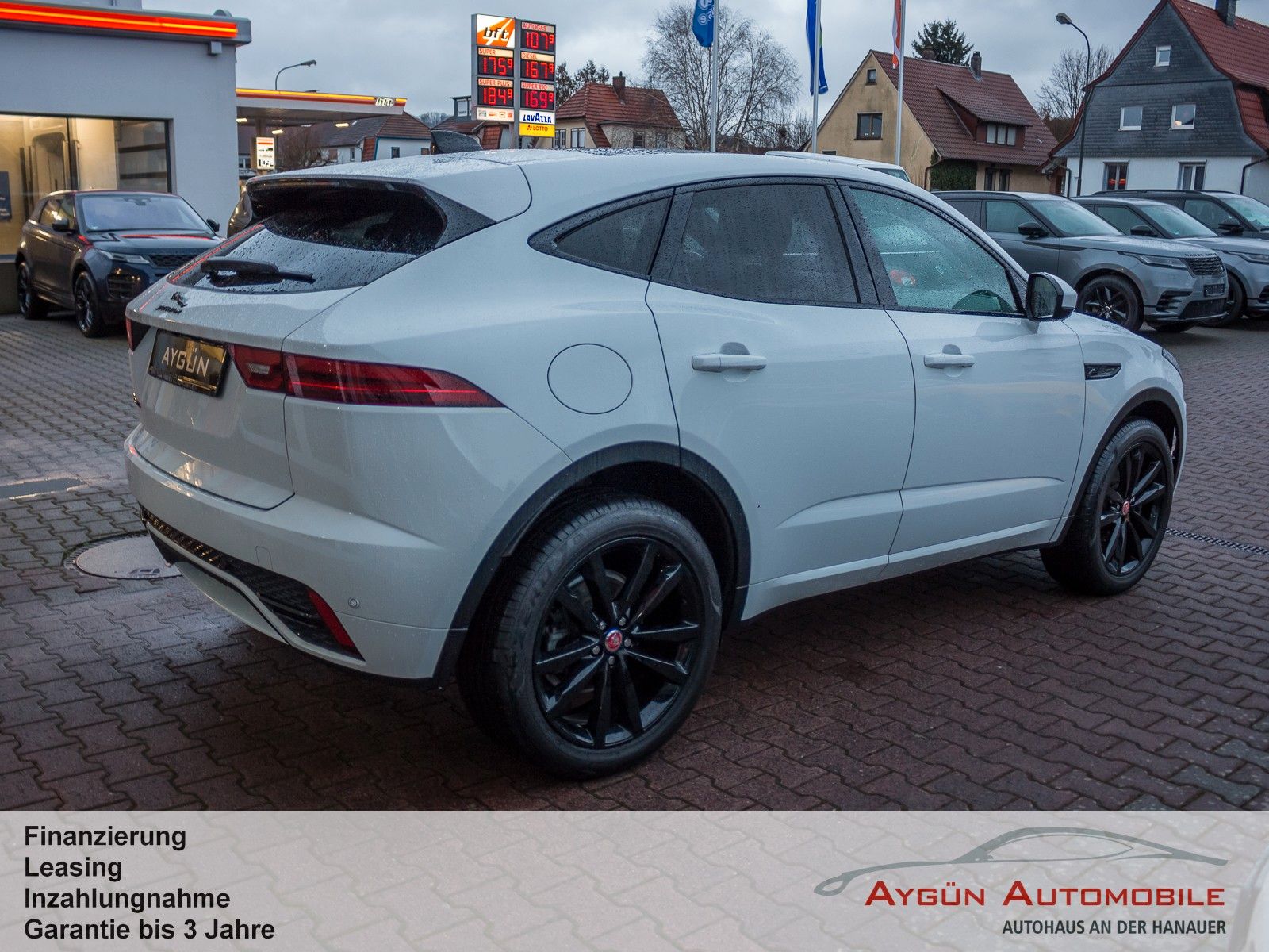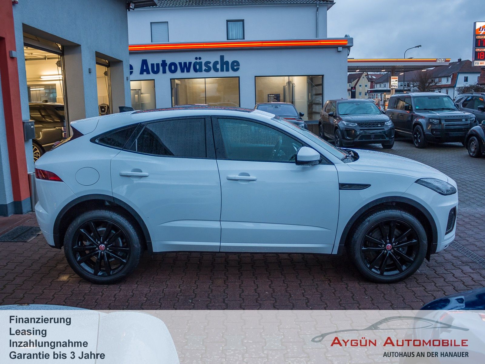 SERIENAUSSTATTUNG 9-Gang-Automatikgetriebe All Surface Progress Control ASPC Anfahrhilfe Low Traction Launch Berganfahrhilfe Dynamic-Modus, konfigurierbar Dynamische Stabilitätskontrolle und Traktionskontrolle Dynamic Stability Control, DSC Efficient Driveline Elektrische Parkbremse Electric Parking Brake, EPB Elektromechanische Servolenkung Electronic Power Assisted Steering, EPAS, geschwindigkeitsabhängig Fehlbetankungsschutz JaguarDrive Control mit Adaptive Surface Response (AdSR) Stopp/Start-System Torque Vectoring by Braking (TVBB) Außenspiegel, elektrisch einklapp- und beheizbar, mit Abblendautomatik auf Fahrerseite und Umfeldbeleuchtung Dunkel getönte Scheiben ab B-Säule Heckscheibe mit Scheibenwischer, beheizbar Regensensor Begrüßungslicht Blinker mit Tippfunktion LED-Heckleuchten Nebelschlussleuchten Premium-LED-Scheinwerfer mit LED-Signatur und animierten Blinklichtern, vorne und hinten und Fernlicht mit Abblendautomatik (Auto High Beam Assist, AHBA) Sensorgesteuertes Fahrlicht Reifendruckkontrollsystem (Tyre Pressure Monitoring System, TPMS) Sommerreifen Dach in Wagenfarbe Abgasendrohre, zweiflutig R-Dynamic Emblem am Kühlergrill Heckschürze, Türverkleidung vorne, hinten in Wagenfarbe Heckspoiler Sportsitze in DuoLeder in Ebony und Interieur in Ebony/Ebony Kontrastnähte Dachhimmel in Morzine (Stoff) - Ebony Multifunktions-Soft-Grain-Lederlenkrad mit R-Dynamic-Emblem Schaltwippen in mattiertem Chrom 2 Getränkehalter vorne 2-Zonen-Klimaautomatik 3 Kopfstützen im Fond Ambiente-Innenraumbeleuchtung Außentemperaturanzeige Einstiegsleisten aus Edelstahl mit R-Dynamic-Schriftzug Innenrückspiegel mit Abblendautomatik Leseleuchten vorne Lüftungsdüsen hinten Mittelkonsole mit Armlehne Sonnenblenden mit beleuchteten Schminkspiegeln Sportliche Edelstahlpedalerie Startsequenz Elastisches Befestigungsband seitlich im Laderaum Haken für Einkaufstaschen im Laderaum Heckklappe, elektrisch Laderaumabdeckung Laderaumbeleuchtung Laderaumnetz Verzurrösen im Laderaum 12 Monate Laufzeit ab Aktivierung 3 x 12V-Anschlüsse und 2 x USB-Daten- und Ladeanschluss Amazon Alexa Android Auto, kabellos Apple CarPlay, kabellos Bluetooth-fähiges Telefonsystem mit Bluetooth-Audiostreaming Pivi Pro mit Navigation Sprachsteuerung Digitales Radio (DAB+) Dynamsche Lautstärkenregelung Meridian Soundsystem 400 W, 12 Lautsprecher inkl. Subwoofer 11,4-Zoll-Touchscreen Analoge Rundinstrumente mit 7-Zoll-TFT-Display Adaptive Geschwindigkeitsregelung (Adaptive Cruise Control, ACC) mit Stauassistent Aufmerksamkeitsassistent Autonomer Notfall-Bremsassistent Einparkhilfe vorne und hinten Kollisionswarnystem bei Rückwärtsfahrten mit Notfallbremsung Kollisionswarnystem Monitor Rückfahrkamera Spurhalteassistent Toter-Winkel-Spurassistent inkl. Annäherungssensor Verkehrszeichenerkennung mit adaptiver Geschwindigkeitsbegrenzer Antiblockiersystem Automatische Verriegelung, konfigurierbar Elektronische Bremskraftverteilung ISOFIX-Befestigungspunkte im Fond (äußere Sitze) Kindersicherung, elektrisch Alarmanlage, perimetrisch