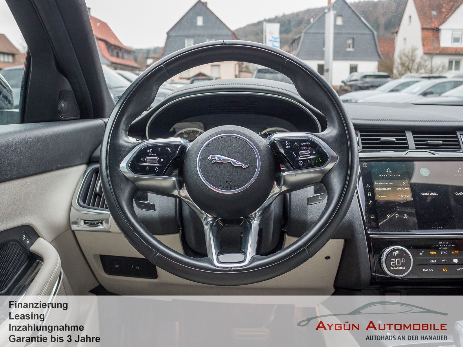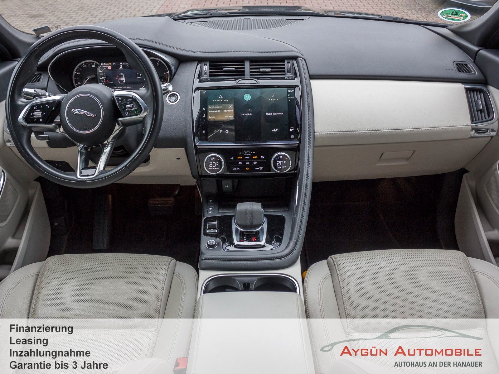 Sonderausstattung:SERIENAUSSTATTUNG 9-Gang-Automatikgetriebe Außenspiegel, elektrisch einklapp- und beheizbar, mit Abblendautomatik auf Fahrerseite und Umfeldbeleuchtung Heckscheibe mit Scheibenwischer, beheizbar Regensensor Begrüßungslicht Blinker mit Tippfunktion LED-Heckleuchten LED-Scheinwerfer mit LED-Signatur mit animierten Blinklichtern, hinten Nebelschlussleuchten Sensorgesteuertes Fahrlicht Sitze in genarbtem Leder in Ebony mit Interieur in Ebony/Ebony Multifunktions-Lederlenkrad Schaltwippen in mattiertem Chrom 2 Getränkehalter vorne 2-Zonen-Klimaautomatik 4 x 12V-Anschlüsse und 2 x USB-Daten- und Ladeanschluss Android Auto Apple CarPlay Bluetooth-fähiges Telefonsystem mit Bluetooth-Audiostreaming Pivi Pro mit Navigation Sprachsteuerung Digitales Radio (DAB+) Dynamsche Lautstärkenregelung Jaguar Soundsystem140 W, 6 Lautsprecher 11,4-Zoll-Touchscreen Analoge Rundinstrumente mit 7-Zoll-TFT- Bordcomputer ECO-Daten Anzeige 3D-Surround-Kamerasystem Aufmerksamkeitsassistent Autonomer Notfall-Bremsassistent (Autonomous Emergency Braking, AEB) Einparkhilfe vorne und hinten Geschwindigkeitsregelung mit Geschwindigkeitsbegrenzer Spurhalteassistent Verkehrszeichenerkennung mit adaptiver Geschwindigkeitsbegrenzer Antiblockiersystem ABS Automatische Verriegelung, konfigurierbar